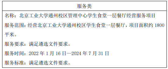 北京工業大學通州校區管理中心學生食堂一層餐廳經營服務項目
