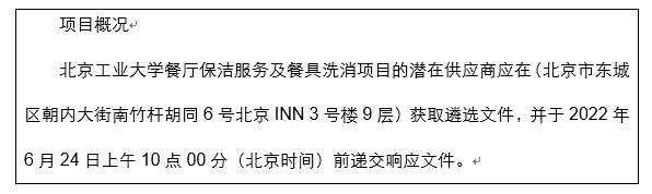 項目名稱:北京工業大學餐廳保潔服務及餐具洗消項目