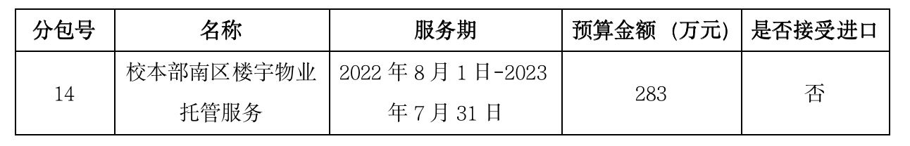 項目名稱:(校撥)校本部南區樓宇物業托管費