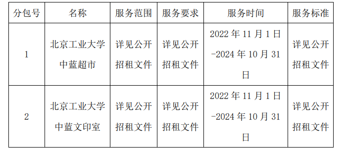 二、項目名稱:北京工業(yè)大學(xué)中藍超市及文印室公開招租項目